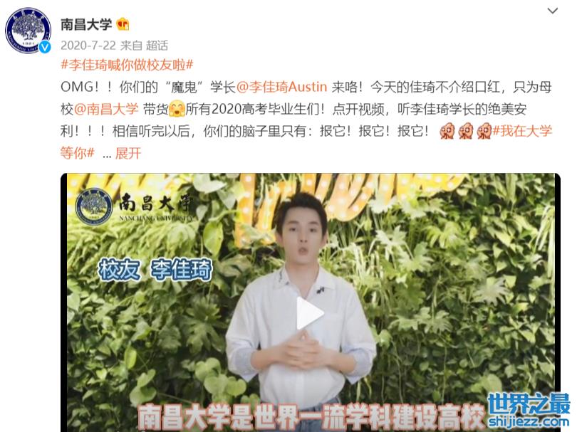 这样说好像是能够解释通,毕竟南昌大学的官微多次提到李佳琦是本校学生,还多次为其宣传,更是以李佳琦是本校学生为傲,那么李佳琦在2011年到2015年就读于南昌大学应该不是假的,至于为何没有取得大学学历,恐怕还需李佳琦本人给出解释,目前李佳琦还没有回应。
