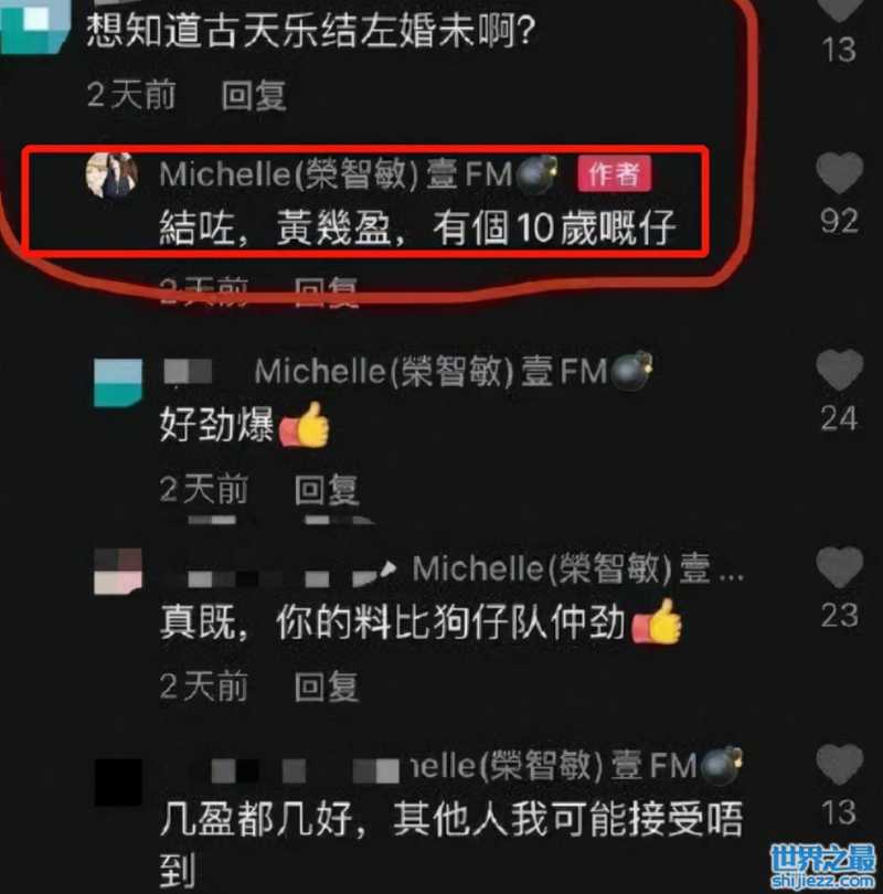 在评论区中容智敏还大胆回应网友表示,古天乐和女方已经在八个月前离婚,两人目前已经是单身状态,从该爆料者的口吻来看,她似乎相当了解。