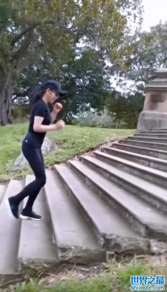 一口气爬完几十层阶梯的刘晓庆没有休息就又开始往下走。只见刘晓庆表情轻松,都没有大喘气的感觉,看来平时没少锻炼。这样活力满满的刘晓庆老师,身体素质完全不输现在的年轻人。