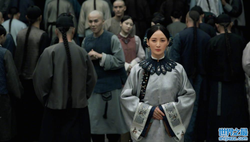 另外,也许是角色设定需要,蒋勤勤在剧中的服装花色都很老气。(发型就不说了,于正肯定是照着史实来设计的)