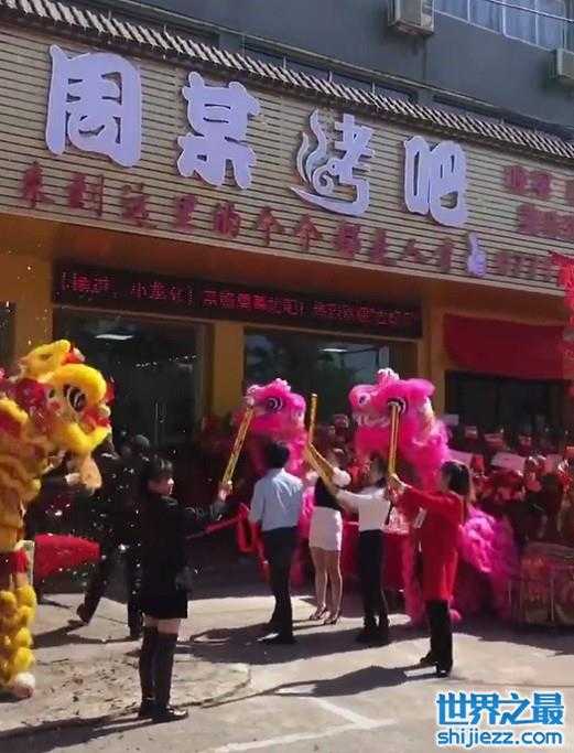 从这一个饭店的外面来看,整个门头牌面还是挺大气的。在开业当天,周某人还请了舞狮队和乐队一起庆祝,气氛十分地热闹。