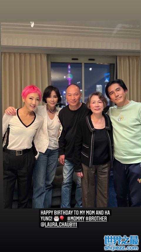 刘嘉玲在上海为母亲庆生,梁朝伟搂着岳母出镜,全家人开心合影 ...