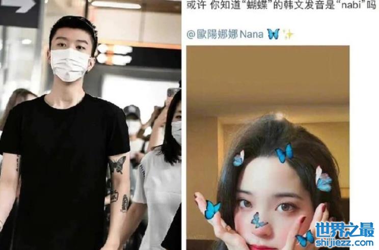 这段时间,网上有关范丞丞与欧阳娜娜疑似恋爱的爆料不胫而走,很多人拿“蝴蝶”说事,说范丞丞新纹身就是蝴蝶,也穿了蝴蝶图案的衣服,而欧阳娜娜小名叫娜比,和韩语蝴蝶的发音是十分相似的,欧阳娜娜自己也认证过,还戴过蝴蝶形状与她名字缩写的项链。