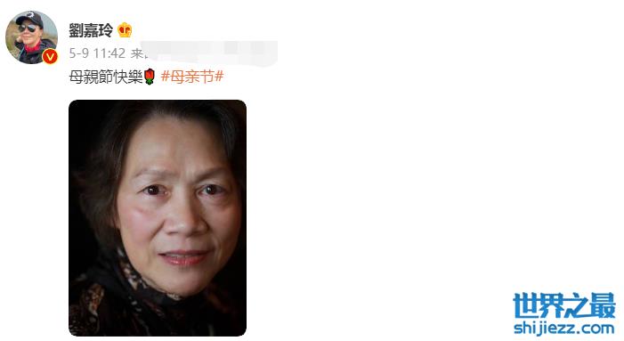 今年五月份,她晒出母亲的大头照,祝她母亲节快乐。照片里的妈妈浅浅的微笑,眉目和善,在年轻时应该也是一个美人吧。