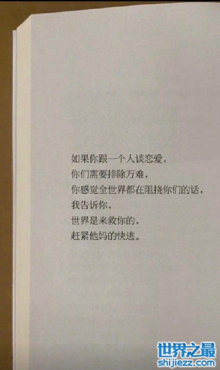 不过我们翻看马思纯的这条微博评论,目前热评排在第一的是一张图片,图片上的内容写着:“如果你跟一个人谈恋爱,你们需要排除万难,你感觉全世界都在阻挠你们的话,我告诉你,世界是来救你的,赶紧tm的快逃。”