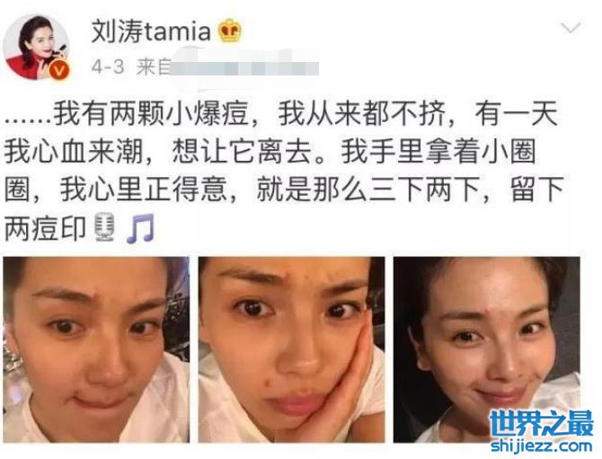 面对长痘,明星也用了不少办法去解决。刘涛就用了一个很“接地气”的办法,那就是把痘痘直接挤掉,结果留下了两个痘印,看来也是一个管不住手的人了。