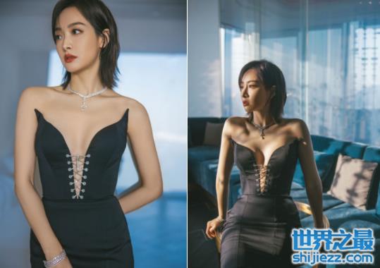 宋茜此次造型在众人里面算是较为大胆的一套,一袭黑色紧身鱼尾长裙又美又飒,尤其领口开衩到肚脐眼,胸口风光一览无余,简单利落的钻石配饰尽显帅气,夕阳光照射在脸上十分具有岁月故事感。