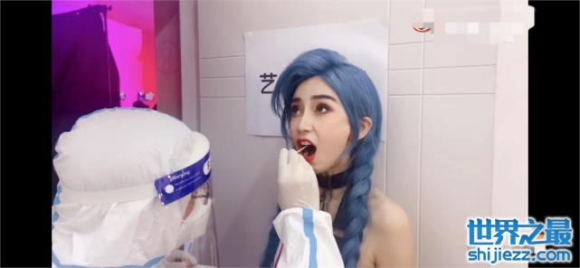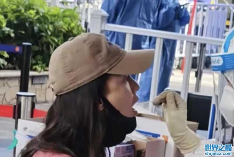 从图中可见,baby是全素颜出门,皮肤状态确实看起来好好,当工作人员做核酸时,baby张大了嘴巴非常配合。