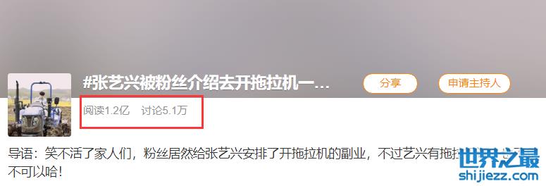 目前,张艺兴被粉丝介绍去开拖拉机的相关词条阅读量已经超过了1.2亿,讨论量超过了5.1万,可见大家对于给张艺兴介绍副业、让他去开拖拉机抱有多大的热情!其实大家就是看热闹不嫌事大(不是!)