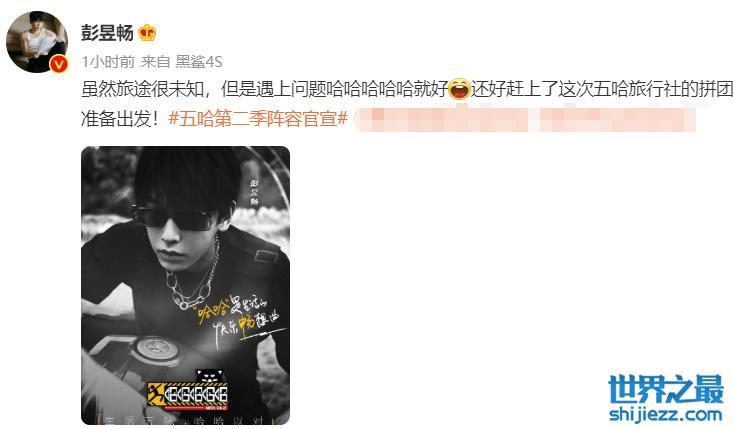 据悉,彭昱畅在第一季中没有加入,这第二季已经做好了准备与陈赫、鹿晗、邓超一起拼团出发,海报中,彭昱畅眼神坚定望向前路,虽然旅途很未知,但遇上问题就哈哈哈哈哈就好,相信彭昱畅的加入,又会给旅途带来不一样的精彩。
