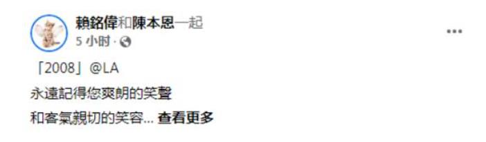 歌手赖铭伟在社交平台发文表示会永远记得陈本恩亲切爽朗的笑声和客气亲切的笑容,希望他一路走好;彭佳慧也表示会一辈子记得陈本恩老师,谢谢他曾为大家带来的祝福与美好。