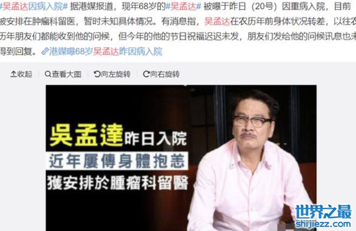 而著名喜剧演员吴孟达也是确诊了肝癌,在今年年初与世长辞。