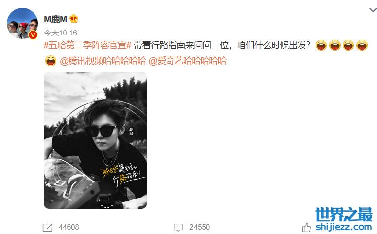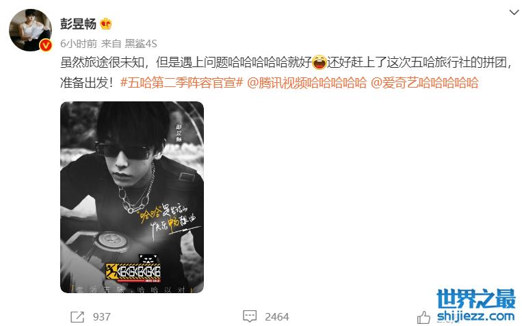 新成员彭昱畅:“虽然旅途很未知,但是遇上问题哈哈哈哈哈就好,还好赶上了这次五哈旅行社的拼团,准备出发!”