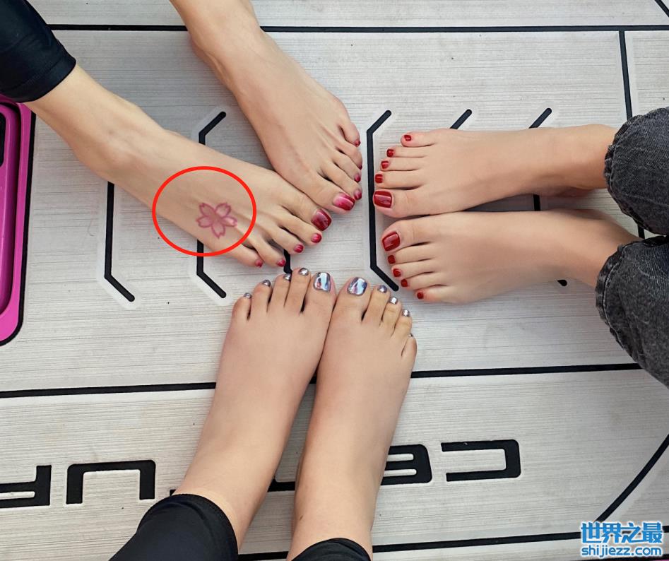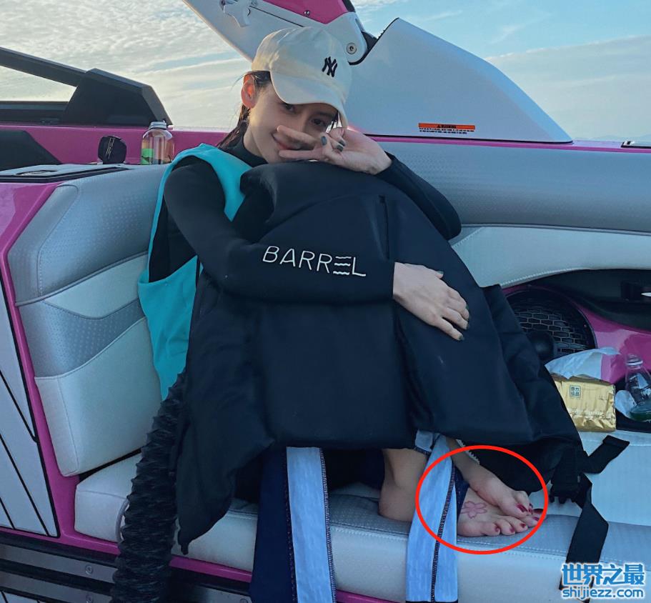 而且在此次的聚会照片中,baby的光脚照片也被晒出,代表性的粉色花朵纹身在镜头中尤为抢眼。