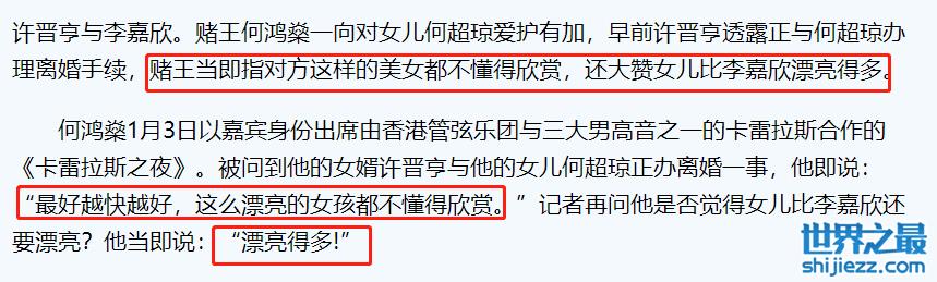李嘉欣与许晋亨相爱时,许晋亨与妻子,也就是赌王最爱的女儿何超琼刚离婚。