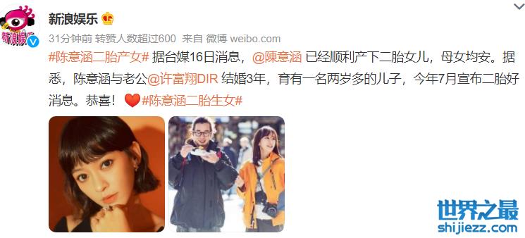39岁陈意涵二胎产女,与导演许富翔三年抱俩,凑齐了“好”字 ...