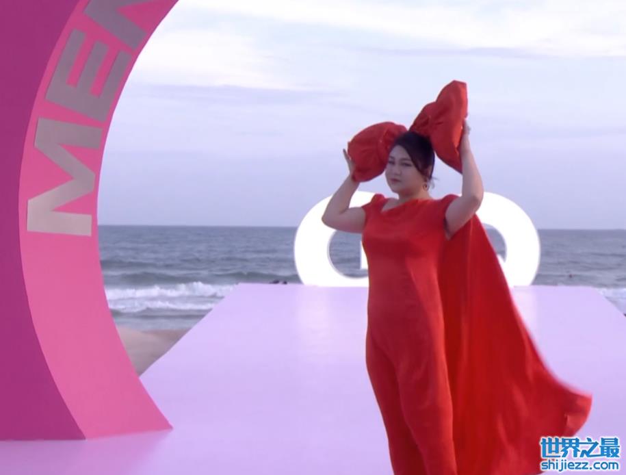 但是一旦加上海风,造型瞬间崩掉,头发被吹得满脸乱飞,头上的蝴蝶结左右摇晃,天真姐还一直用手整理自己的蝴蝶结,结果调整失败,只能硬着头皮走,表情也非常无奈!