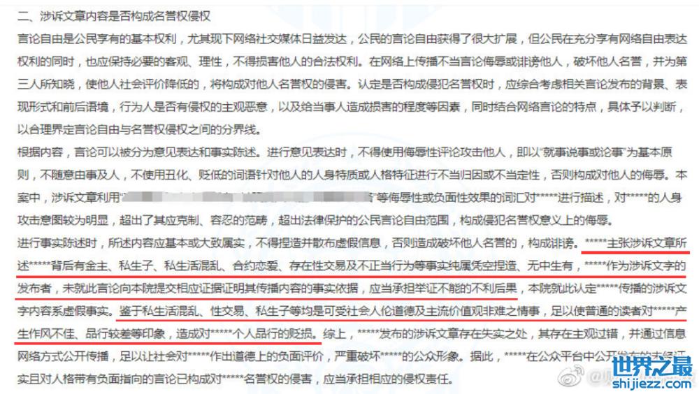 虽然鹿晗与王某各执一词,但最终法院认为,被告王某文章中利用侮辱性的词汇对原告鹿晗进行描述,对原告的人身攻击意图较为明显,其中涉诉文章所诉背后有金主、私生子、合约恋爱等不正当行为纯属凭空捏造,无中生有,王某作为涉诉文字的发布者,无法提供相应证明其传播内容的事实依据,应当承担举证不能的不利后果。