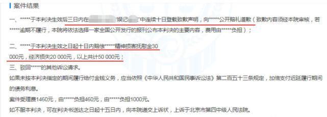最终判决王某赔偿鹿晗精神损害抚慰金30000元,经济损失20000元,共计50000元,而且还要连续十天登载致歉声明。