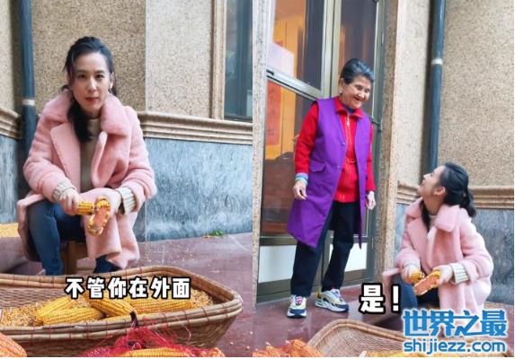 黄圣依在豪宅门口掰玉米!坐小板凳打扮富贵,婆婆穿厚底鞋太时尚 ...