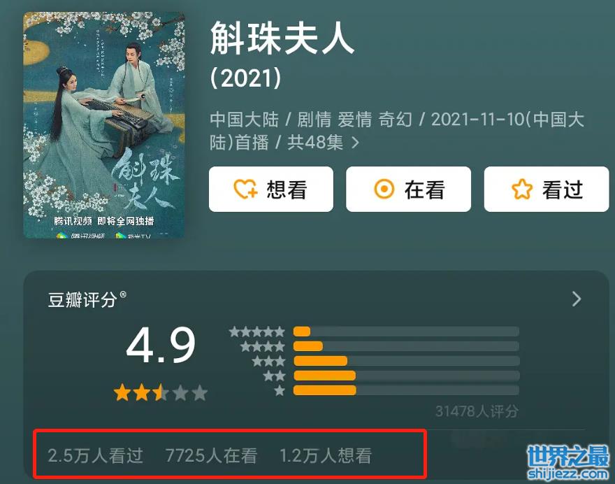 比如最近杨幂热播的新剧《斛珠夫人》,评分才4.9分,离及格线还很远。这部剧女主角杨幂扮演少女,男主陈伟霆的造型都被吐槽,故事不够新颖,打戏敷衍,连顶流女星杨幂也“带”不起来了。