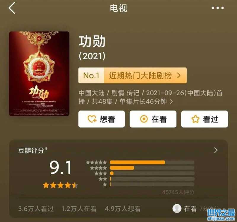 从一周口碑排行榜里可以看到,进前十的内地电视剧有两部,第一部是《功勋》,豆瓣评分是9.1分,这个评分在排行榜里排第二名。《功勋》这部电视剧不管是阵容还是制作都是近期内地剧集里很出众的作品,加上意义深刻的题材,能得到观众的喜爱和认可是意料之中的事情。