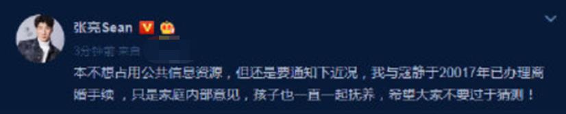 但正当大家羡慕二人的幸福时,张亮突然发文宣布与妻子寇静离婚,这在当时也是引起了不小的轰动。