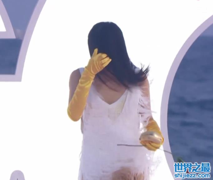 杨天真手扶蝴蝶结走秀