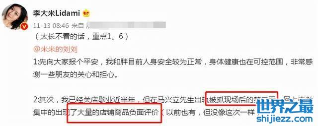 其次,李大米还怀疑马兴立雇水军来抹黑自己的店铺。因为曝光老公出轨被抓第二天,网上立刻出现了大量关于店铺的负面评论。以前也有,但这一次更加统一,明显是背后有人操作。