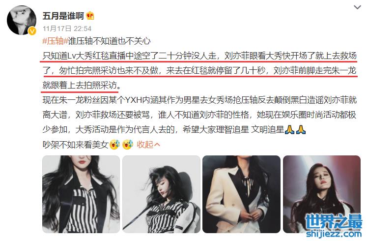 这场意外出现的红毯事故也让活动方明显感到慌乱,活动结束后,LV官微发布动态也只发了有关刘亦菲的相关红毯动态,不知道是不是别有寓意。