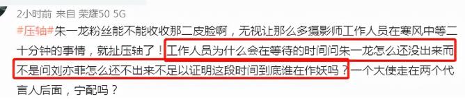 这场“双名牌抢C”风波当时就已经引发周冬雨粉丝不满,这次朱一龙与刘亦菲的“20分钟悬案”,更是让周冬雨粉丝旧事重提,加入大战。
