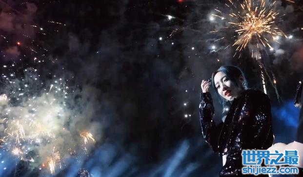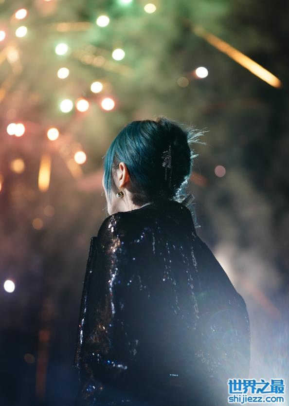 以烟花为背景,孟美岐从背影,到回头撩头发,到侧脸对着旁边开怀大笑,好像她也像这烟花一样美好似的。