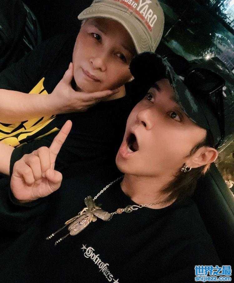 罗志祥还是以前的打扮,戴着潮牌项链的他陪在妈妈的身边,然后做出搞怪的动作,母子合影有一些“兄弟”合影的即视感。