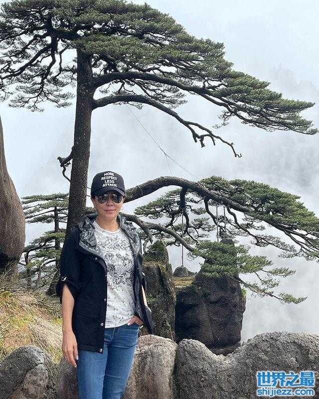 上一次她还带着母亲和弟妹,还有弟弟一起爬黄山,刘嘉玲还不忘记站在千年黄山松树下面合影。