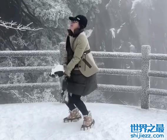 刘嘉玲发文:黄山的第一场雪。接着就是自己玩H的场景,不知道这一次老公梁朝伟有没有跟着她一起到黄山来玩雪。