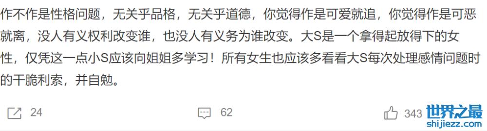 这件事上他们其实谁也没有说服谁,谁也没有低头,只不过大S选择了“避开问题”的方式,但对于有主见的大S来说,小事可以不管,遇见重要的事情时,她可能就不会选择委屈自己了。