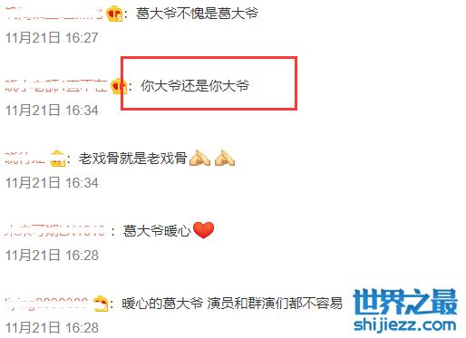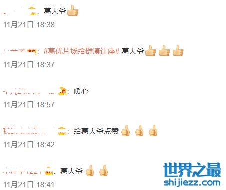 网友们纷纷留言赞扬葛优,“你大爷还是你大爷”,“老戏骨就是老戏骨”,“葛大爷暖心”,“给葛大爷点赞”。