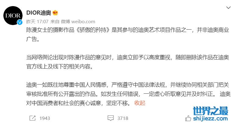 但是迪奥方面直接挂了陈漫的大名,并强调陈漫的作品是“迪奥艺术项目作品之一”,并非迪奥商业广告。这句话的意思就是在说,迪奥并没有提出命题拍摄的要求,陈漫拍摄的作品是她自己的想法,和我们迪奥可是一毛钱关系都没有的。