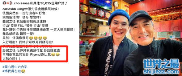 陈家乐在网上激动地说,本来是用自己的手机拍的合照,但拍的照片却是雾蒙蒙的,于是周润发主动用自己的手机与他再次合影,事后又主动发照片给他,这一举动让陈家乐非常感动,作为娱乐圈的前辈,对待后辈仍然这么谦和低调,怪不得有这么多人喜欢周润发。