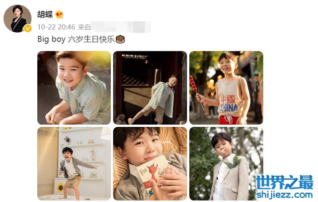 这是胡蝶的小女儿,她还有一个六岁的儿子。十月份,她也在社交平台上为儿子送上了祝福。