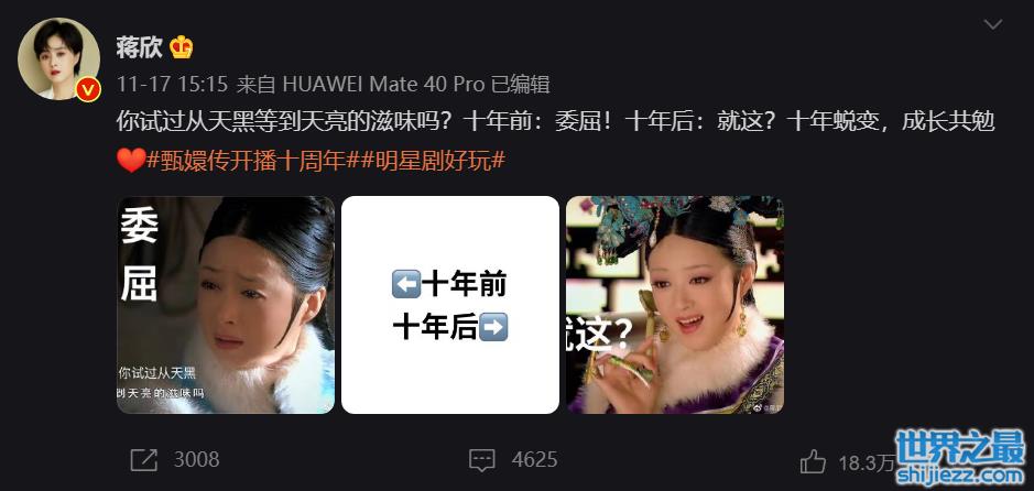 近期,蒋欣也是在《甄嬛传》播出十周年之际,发文调侃了自己一波。她已经从十年前的委屈到哭泣的“年答应”蜕变成了对任何事都是“就这?”的“华妃”了。