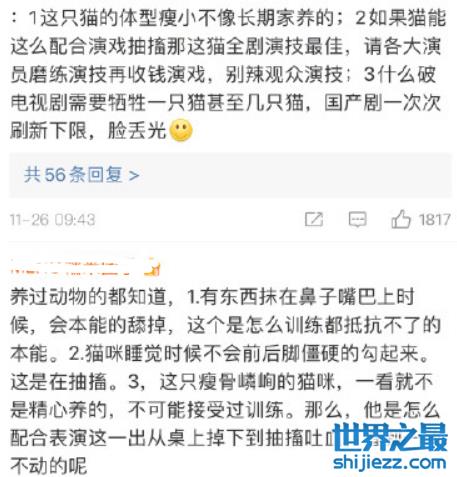 网友们如今非常担心,小猫已经被无良剧组因为拍戏需要而毒杀了,更反讽地表示,如果真的像剧组说的那样,那么这只猫应该拿奥斯卡了。