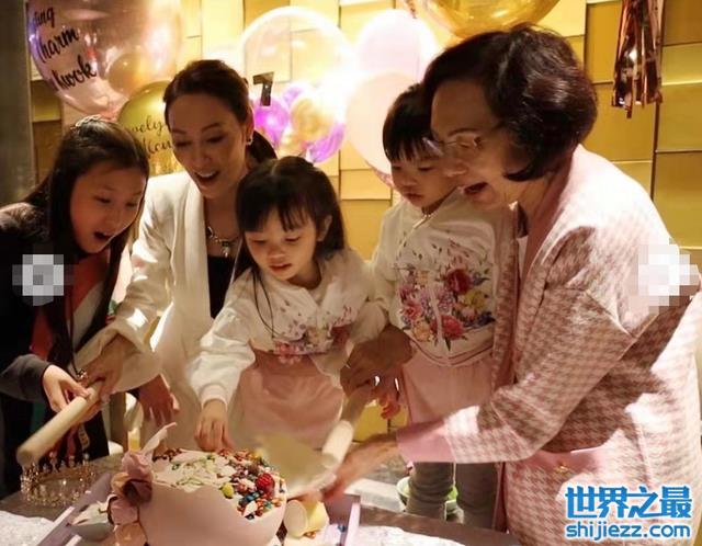 熊黛林的双胞胎女儿也在席间,两个小朋友被郭可盈和奶奶抱在怀里,穿着相同的衣服,眉眼和妈妈长得很像,目不转睛地盯着蛋糕,还忍不住用手去触碰,也是非常可爱了。
