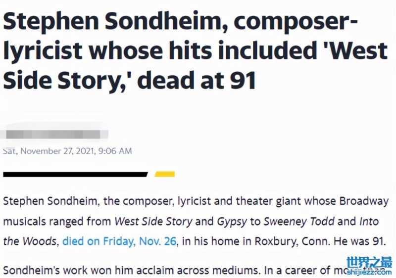 音乐剧泰斗史蒂芬·桑德海姆去世!享年91岁,前一天还和友人聚会 ...