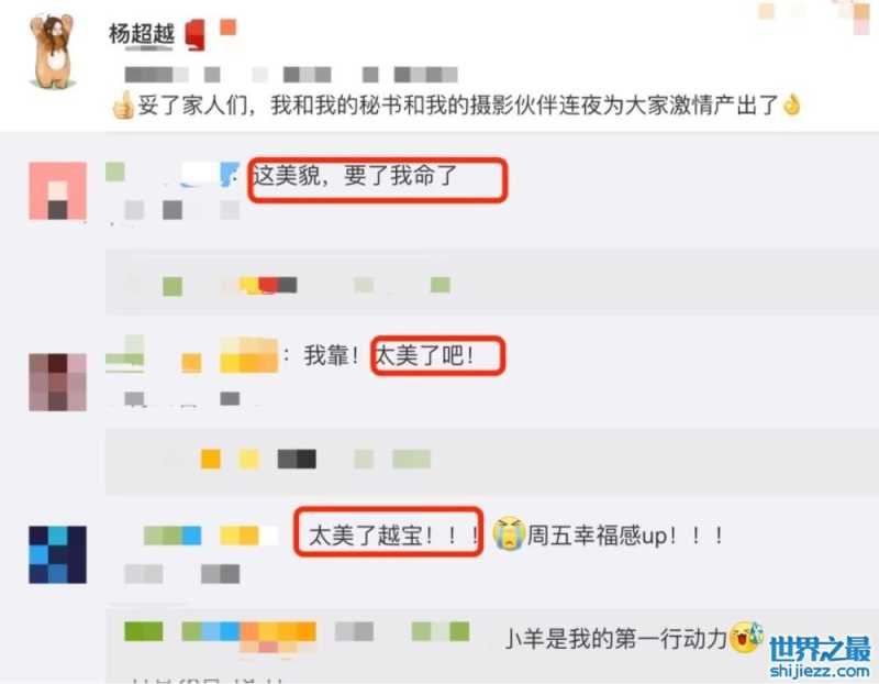 在帖子中,杨超越亲切的称网友们为“家人们”,还表示到“我和我的秘书和我的摄影伙伴连夜为大家激情产出了”。并且网友们在评论区的情绪也十分激动,狂夸杨超越太美了。