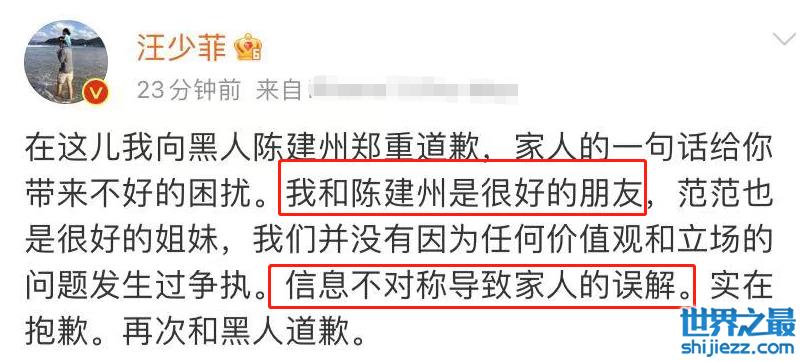 不久后,汪小菲在社交平台做出回应,称自己和陈建斌是好朋友,没有被陈建州暴打过,是因为信息不对称导致妈妈误解,并向陈建斌郑重道歉。