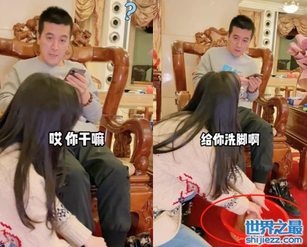 阔太黄圣依半蹲为老公洗脚!打扮朴素动作利索,平价脚盆太接地气 ...