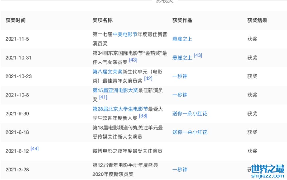 小8随手翻了一下刘浩存的获奖列表,才发现出道刚刚一年的她,原来已经拿过这么多奖了!
