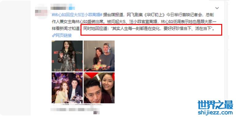 前段时间,在《华灯初上》剧组的发布会上,正值大s与汪小菲确定离婚,而林心如也被记者追问道怎么看待两人离婚,林心如的回答也非常高情商,说自己也是才知道,同时表示要珍惜当下,也侧面证明其与霍建华之间的婚姻幸福。