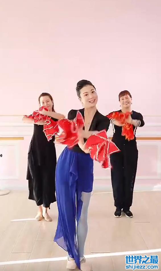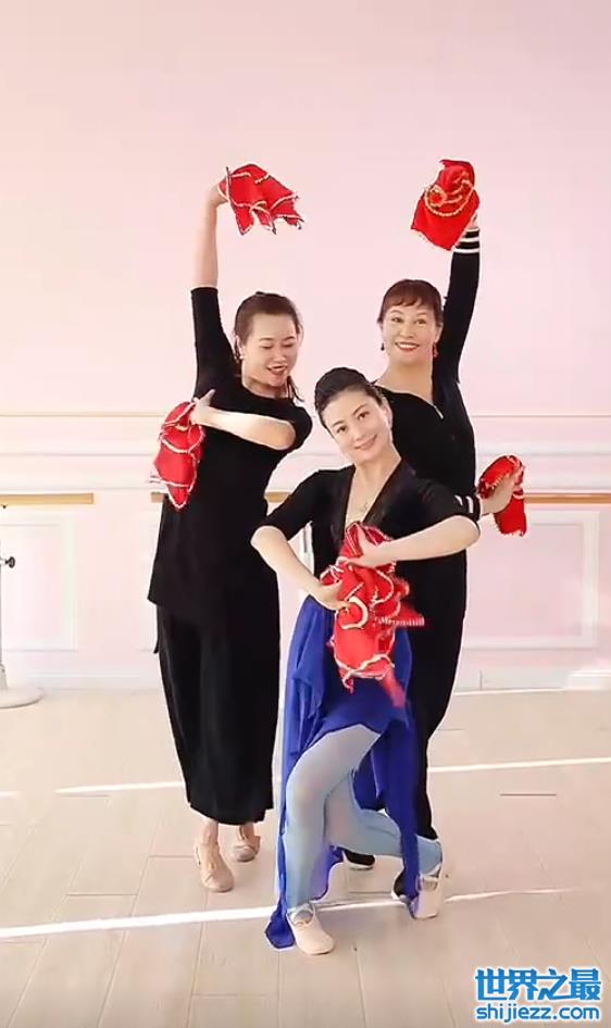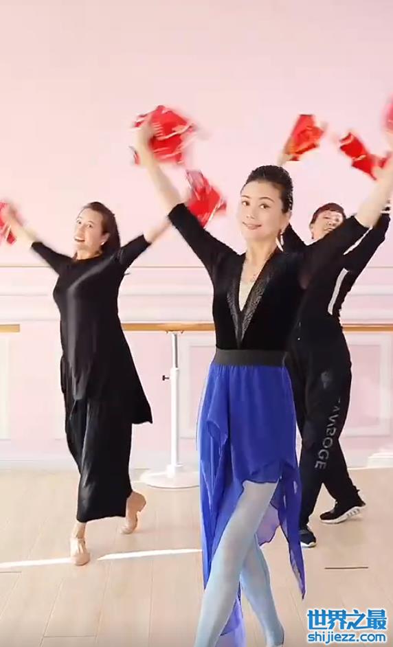身后的金珠老师也穿着同款舞蹈服,跟着谭梅一块儿舞蹈。已经年过半百的金珠姿势优雅气质出挑,在专业舞蹈家谭梅老师面前也毫不逊色,整个舞蹈过程中都洋溢着自信的笑容,完全沉浸在舞蹈当中。
